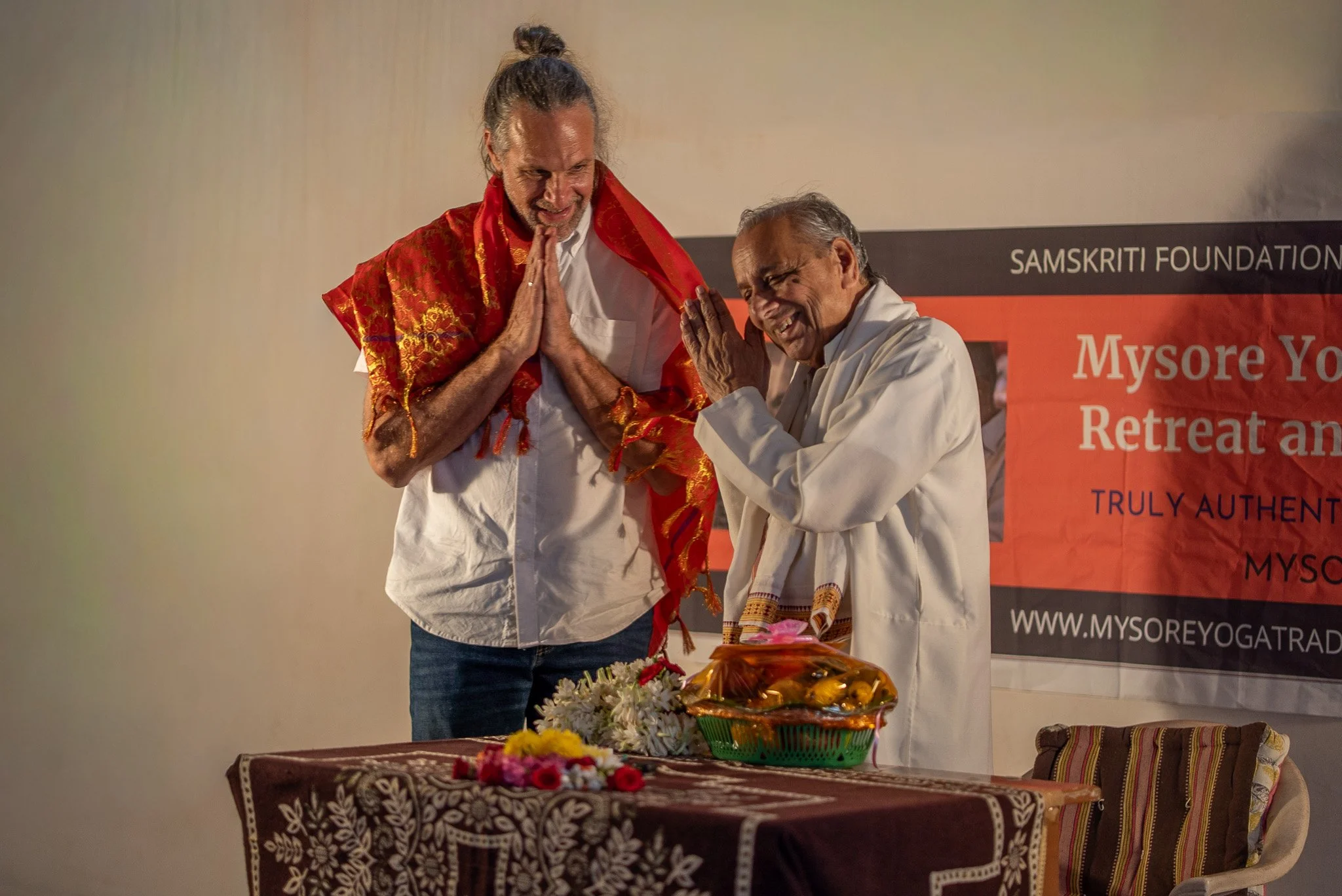 The Mysore Yoga Traditions 200-hour Ashtanga Immersion is a carefully guided month of study, practice, and cultural immersion created by the makers of Mysore Yoga Traditions Film and the organizers of Mysore Yoga Conference. Designed for sincere students at many stages of the path—from experienced teachers to dedicated practitioners who want to go deeper—it brings together daily practice, thoughtful instruction, direct contact with Mysore’s senior teachers and Sanskrit scholars, and a final immersion in the temple village of Melkote. More than a training, it is an opportunity to experience the wider tradition that shaped the yoga you love, in a way that is personal, grounded, and difficult to find elsewhere.